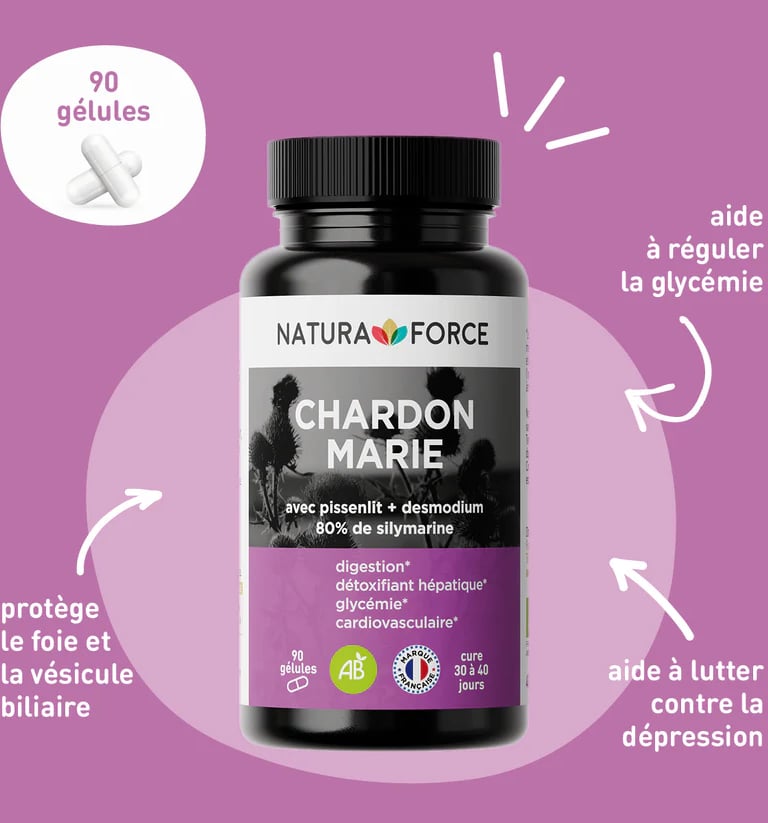 Chardon-Marie : Protège le foie contre les toxines et favorise la régénération des cellules hépatiques.
